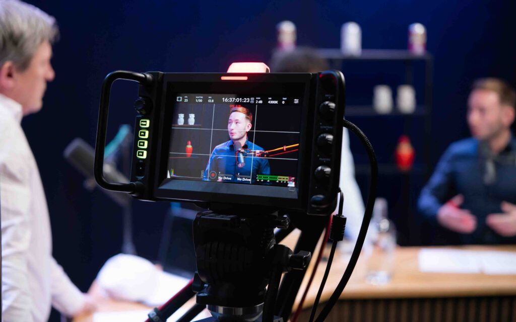 Bij Podcast District zorgen we er voor dat je vergeet dat de camera’s draaien. Onze studio’s zijn sfeervol ingericht (geen kille tv-set!) en we stellen het licht zo af dat je er op je best uitziet. We filmen met meerdere camera’s voor een dynamisch beeld, terwijl jij gewoon lekker in gesprek bent. Het resultaat? Een professionele uitzending die zo de bioscoop in kan.