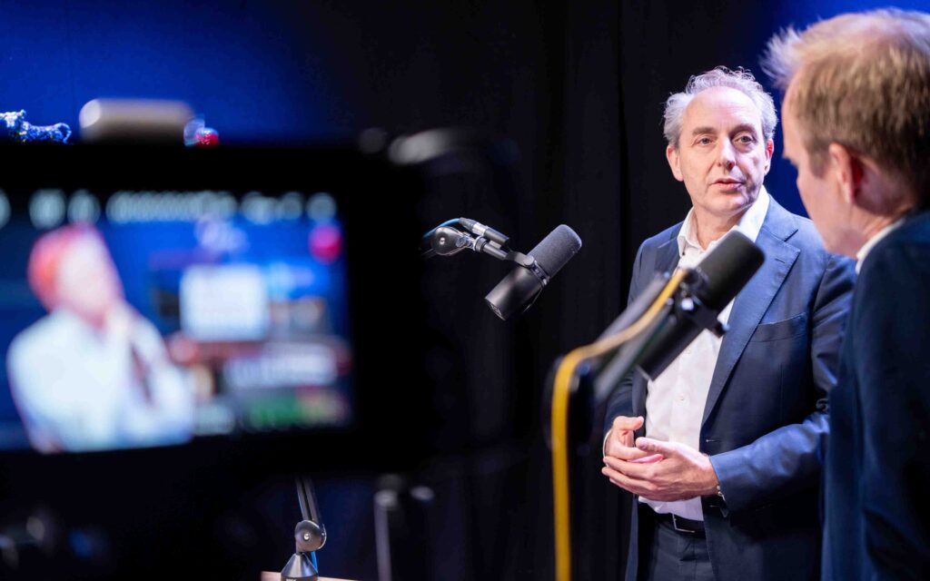 Daarom zorgen wij voor verbinding. Met slimme camera-opstellingen brengen we niet alleen de spreker, maar ook de reactie van het zaalpubliek in beeld. We kunnen vragen uit de zaal afwisselen met vragen uit de online chat. Zo ontstaat er een dynamisch gesprek tussen de mensen op de stoelen in Naarden en de mensen op de bank thuis.