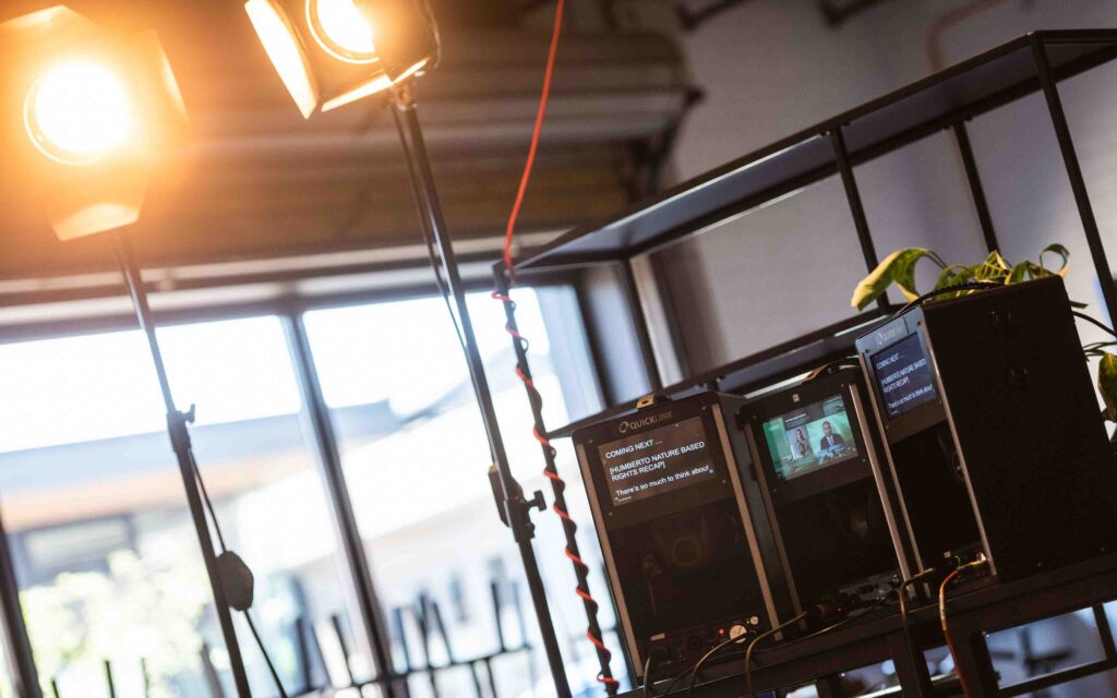 Het grootste gevaar van een webinar? Dat je gaat ‘zenden’ en vergeet dat er mensen kijken. De kracht zit juist in de interactie. In onze studio maken we het je makkelijk om in contact te blijven met je publiek. Via onze monitors zie jij direct de vragen binnenkomen via de chat. Start een poll om de mening van je kijkers te peilen of laat ze stemmen op stellingen.